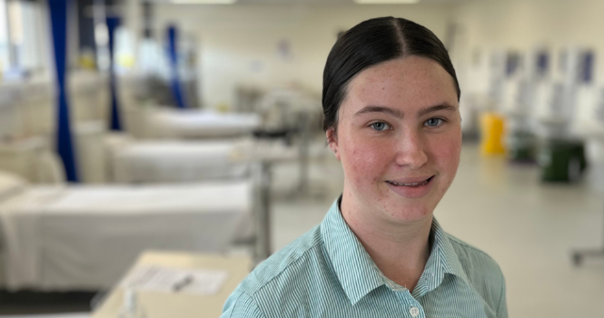 Graduating high school as a qualified assistant in nursing wasn’t enough for the 17-year-old, who enrolled in the Diploma of Nursing in January 2024.