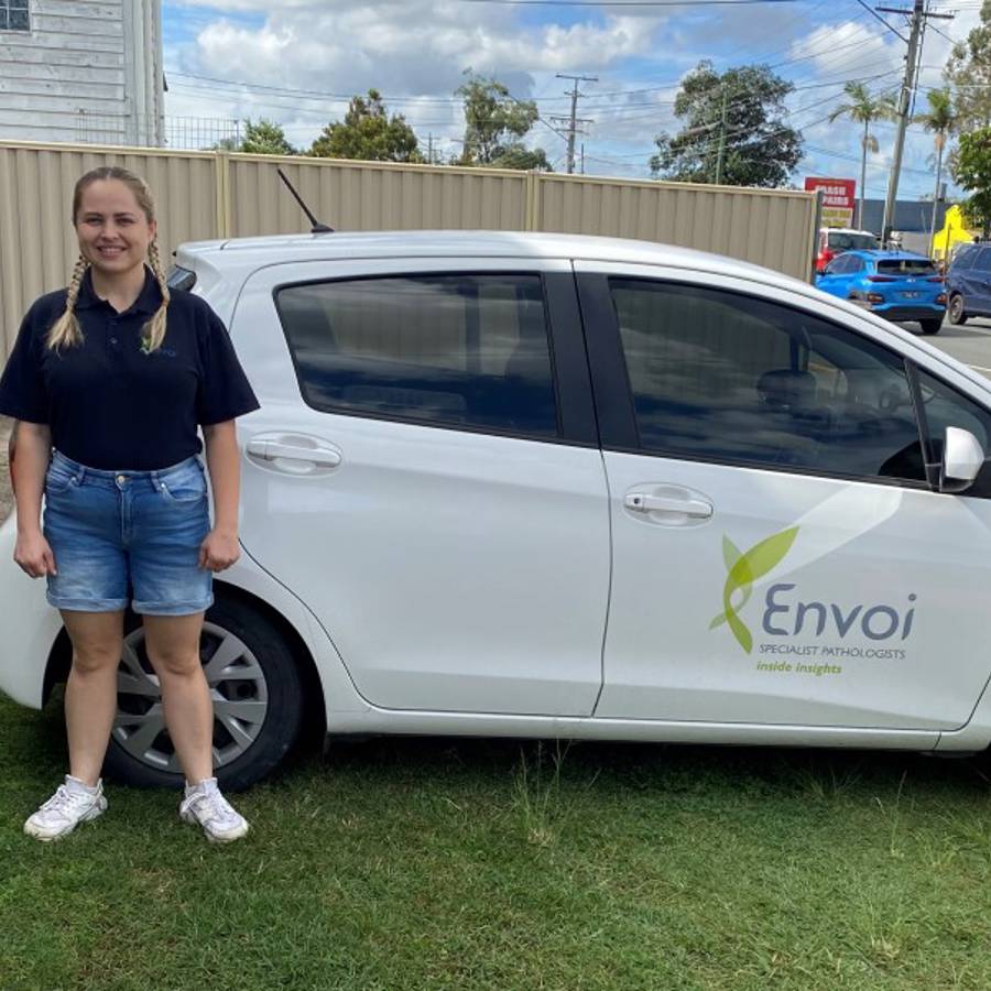 Pictured: Renee in her new role in the medical profession. Part of her role involves being a courier to healthcare facilities.